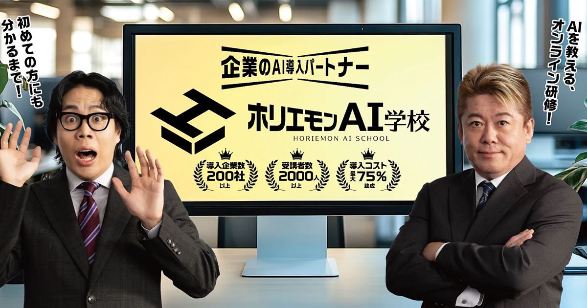 ホリエモンAI学校は、AI未経験のビジネスパーソン向けにオンラインで学べる教育機関。